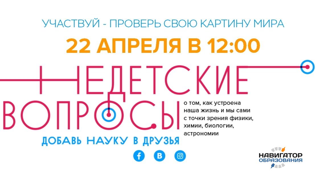 Акция «НеДетские вопросы», которая пройдёт 22 апреля, является первым подобным мероприятием. Её участникам предстоит справиться с заданиями, требующими понимания устройства живой и неживой природы. В роли «лаборантов» они будут стремиться решить поставленные задачи под руководством «учёных-завлабов».